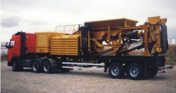 Mobile Brech- und Recyclinganlage mit Prallbrecher 700 mm auf 2- Achs-Sattelfahrwerk,